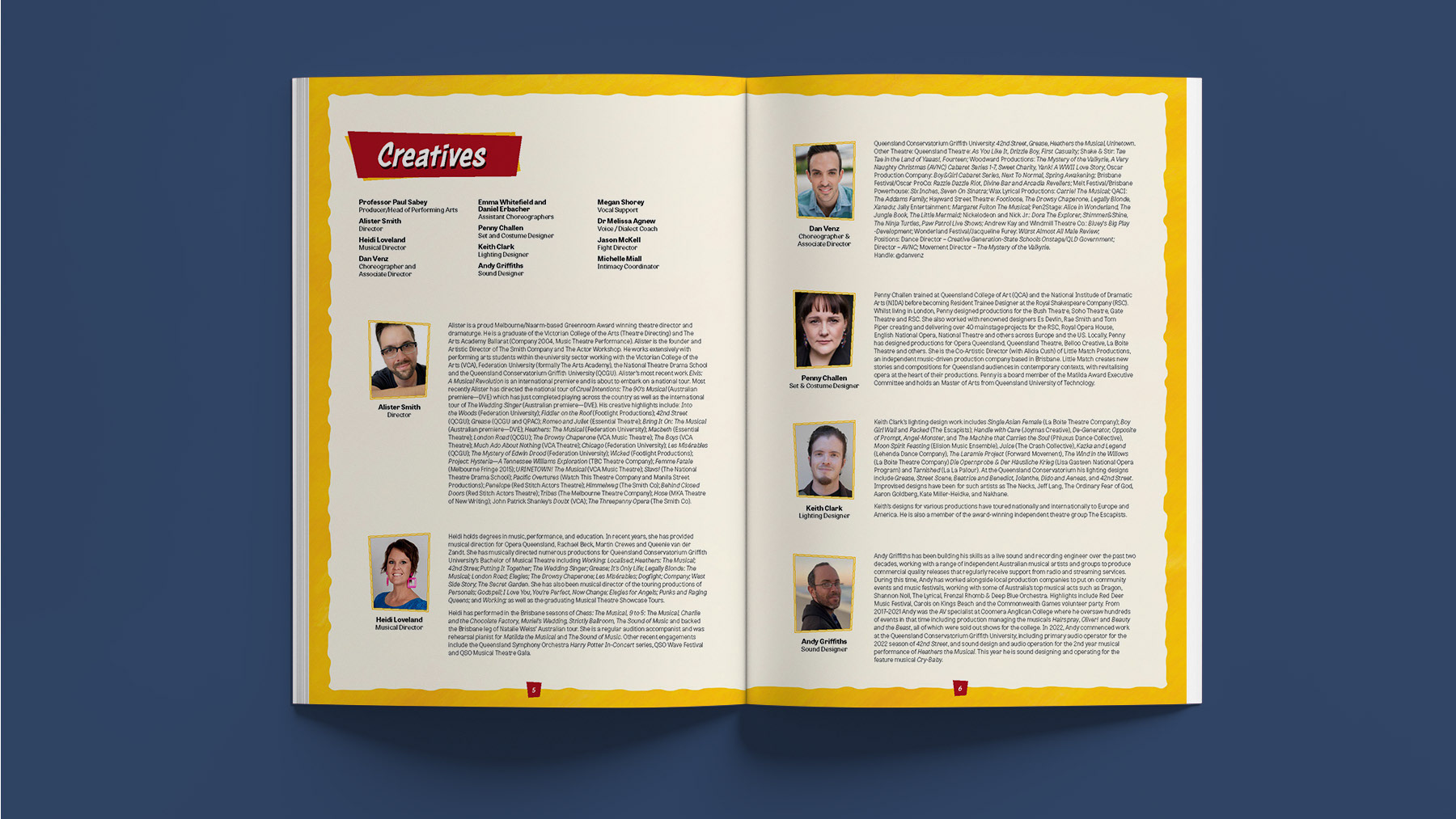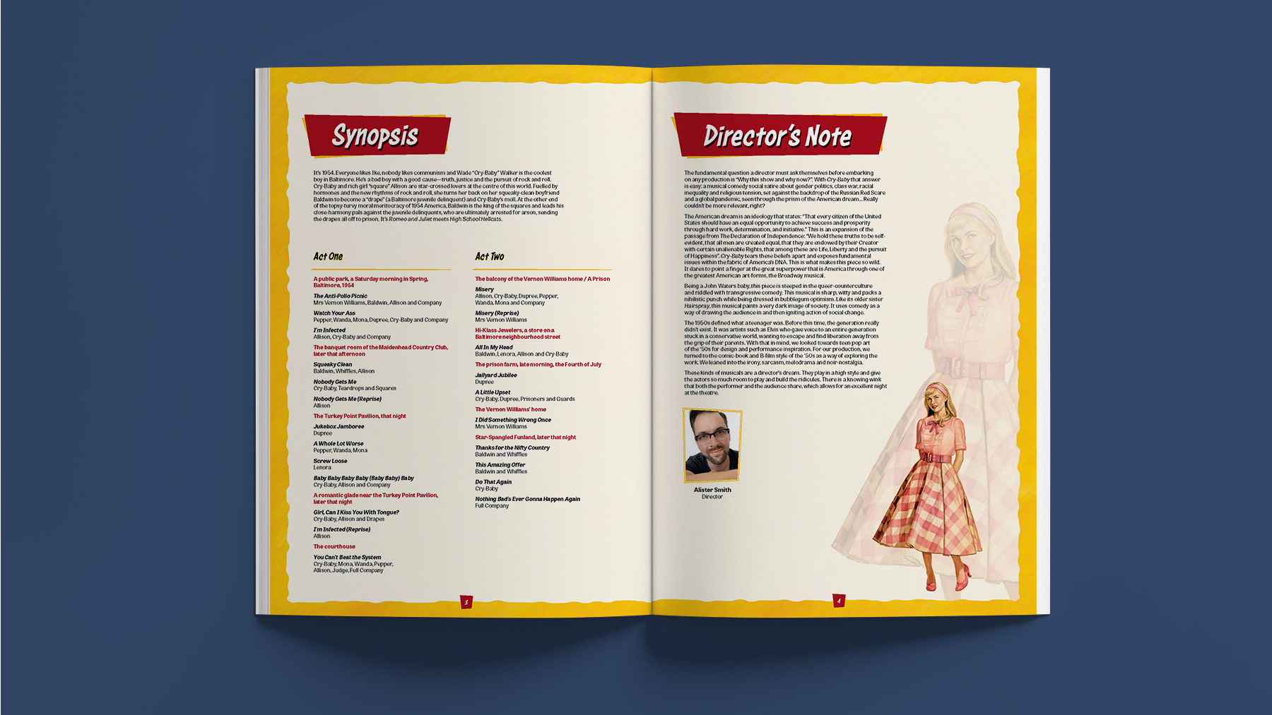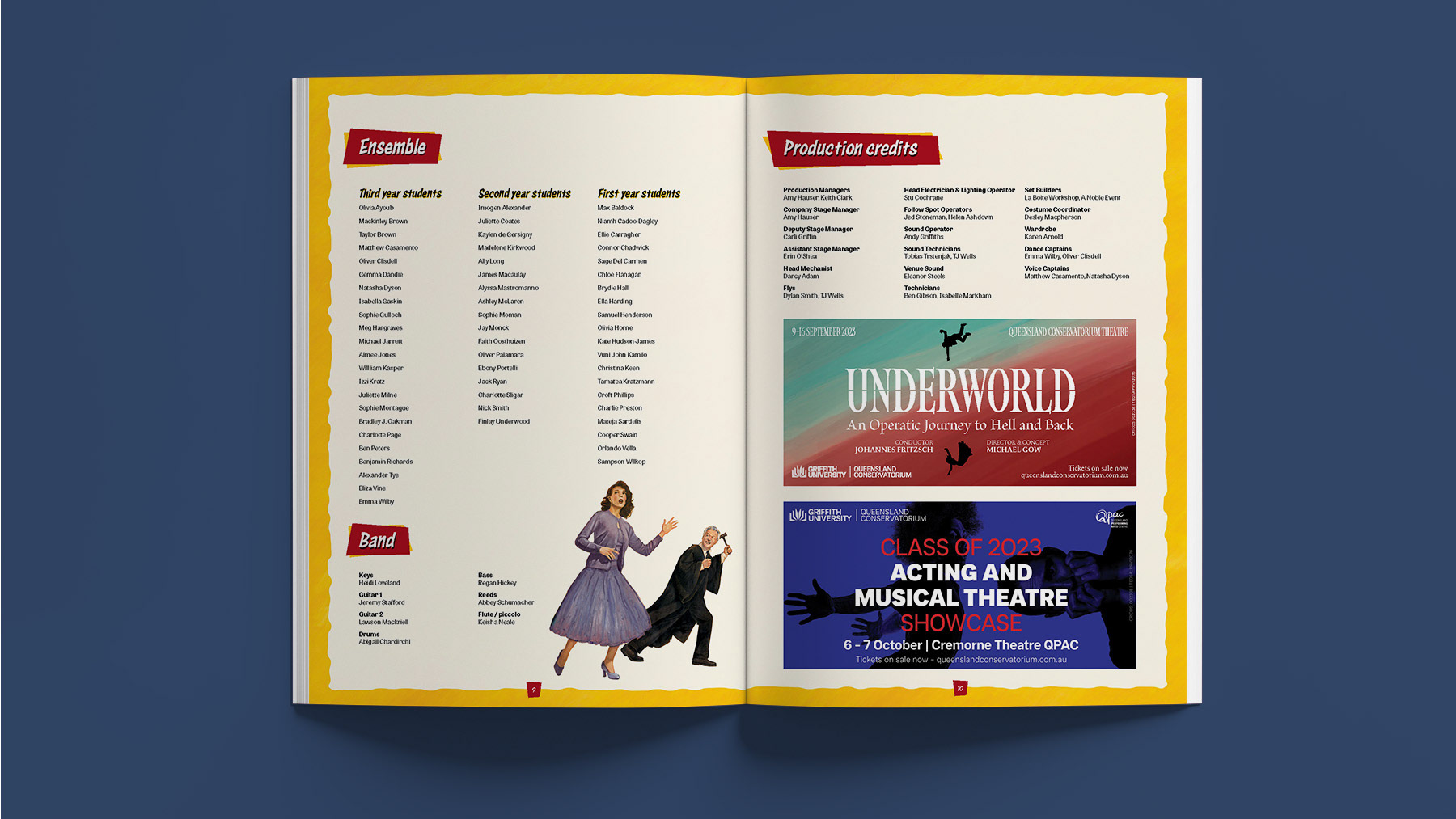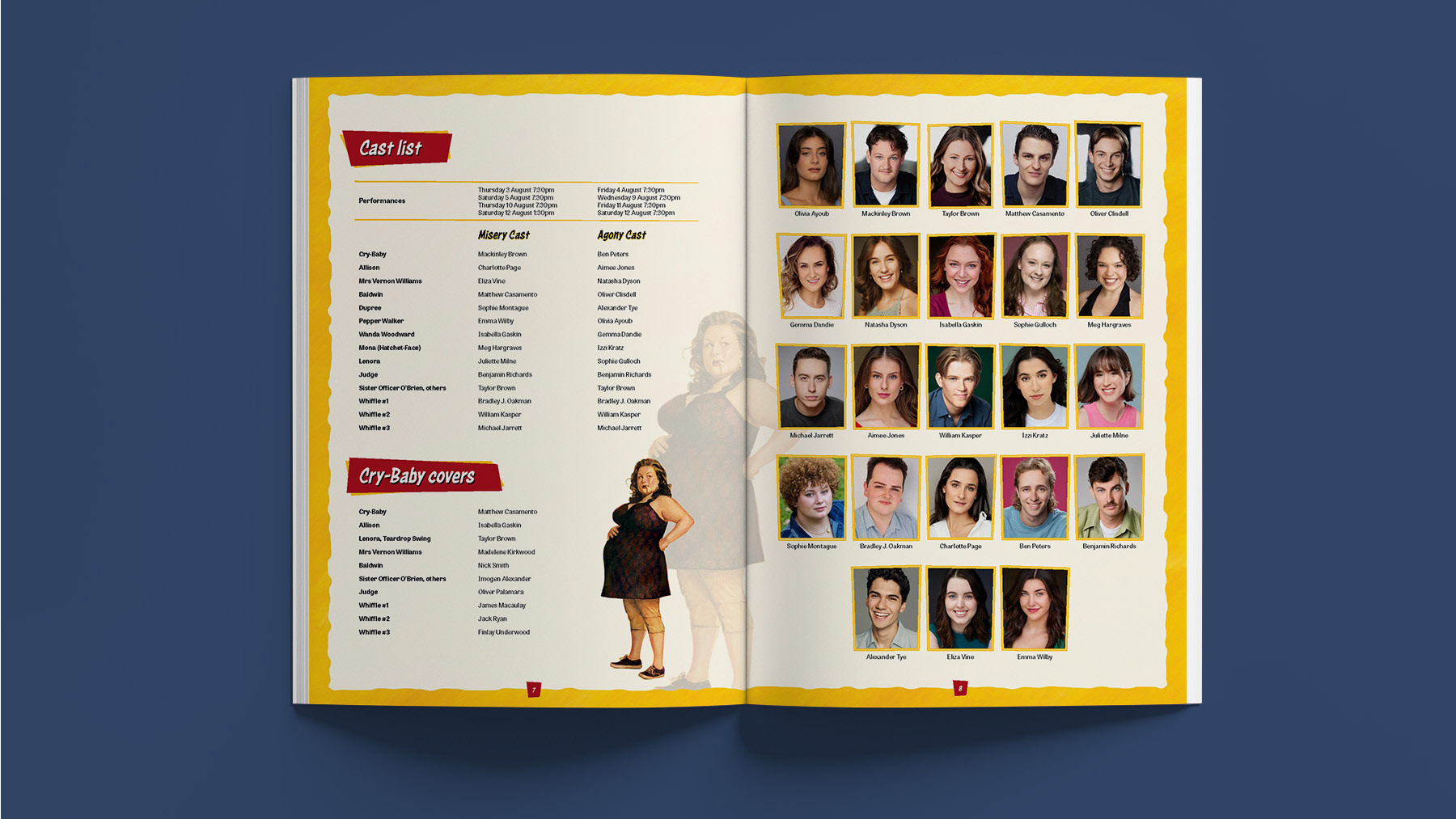 The official program for Cry-Baby: The Musical was designed for the Queensland Academy of Excellence in Musical Theatre and performed at QPAC in Brisbane.